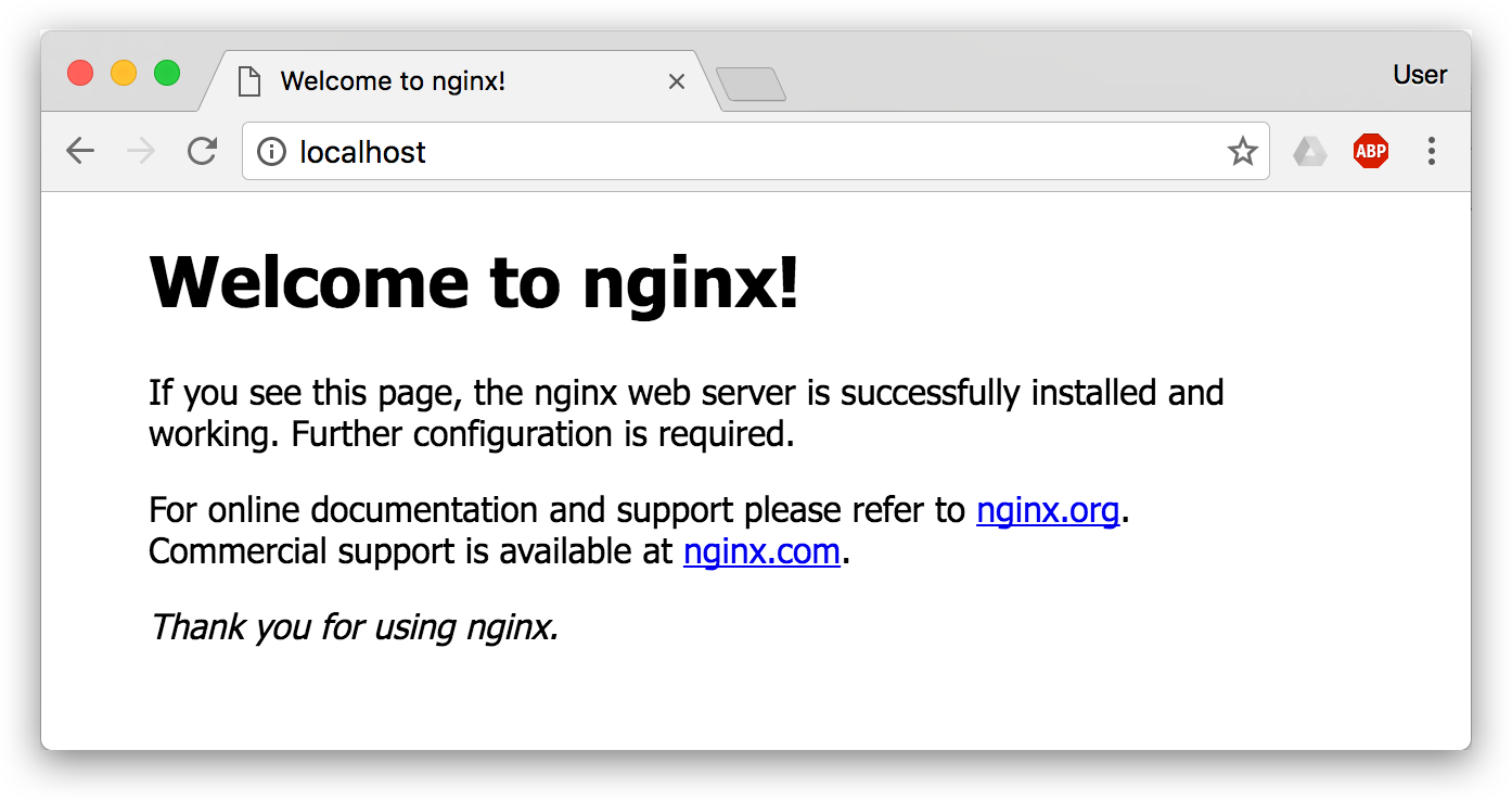 服务运行后,可以访问 http://localhost,如果看到了 "Welcome to nginx!",就说明 Docker for Mac 安装成功了。