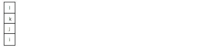 它的格子包含数据,比如整数 i、j、k 和 l 等等,格子从底部(索引 0)至顶部(索引 n)来索引。这个例子中假定 n=3,那么一共有 4 个格子。