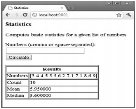 编写一个网页程序,可以让用户输入一连串的数字,然后将它们打印出来,计算出这些数字的均值和中值,就像下边这张截图一样: